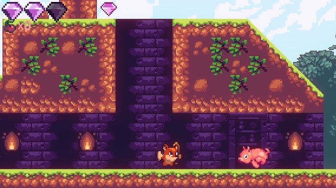 2D platform game with 3 stages, where you can cling to walls, throw cherries and attack with a sword. There are 2 enemies, pig and eagle.